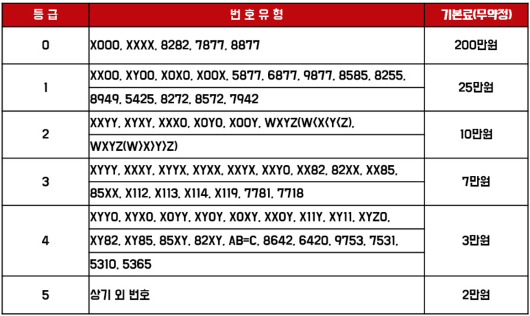 전화번호는 뒷자리 번호조합에 따라 가격이 책정됩니다.